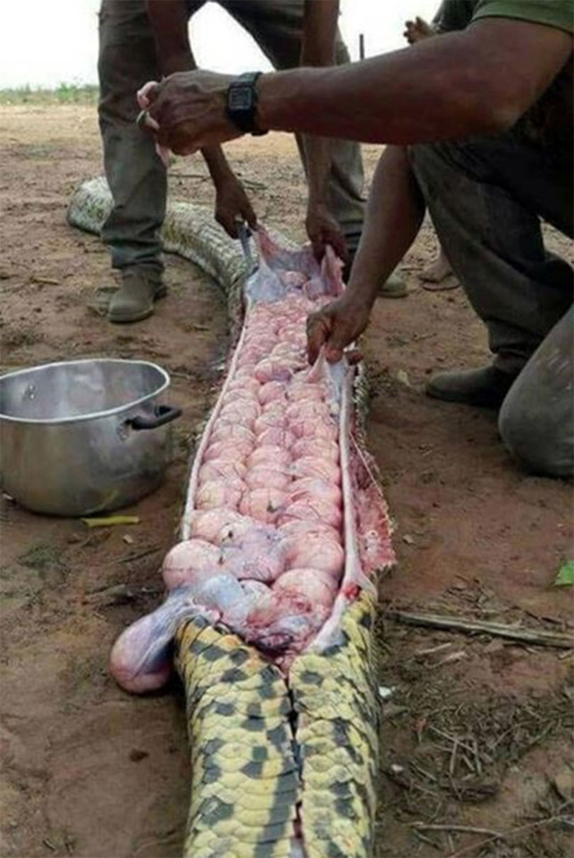 वास्तवमा त्यो अजिंगरको बाच्छो खाएको थिएन । त्यो एक पोथी अजिंगर थियो र छिटै नै बच्चा जन्माउनेवाला थियो । उसको पेटमा बच्चा रहेका दर्जनौँ अण्डा थिए । तिन तहमा प्याक गरिएको अवस्थामा अजिंगरको पेटभित्र रहेका गुलावी रंगका अण्डाहरुको दृष्य कुनै हलिउड फिल्मको दृश्यभन्दा कम छैन ।